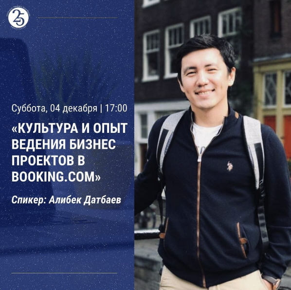 I was invited by my classmate from university Saule Baimuratova. This was an online guest lecture for Suleiman Demirel University on the topic of corporate culture and how to lead projects at Booking.com